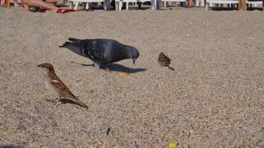 Смелый турецкий ВОРОБЕЙ против ГОЛУБЯ. Борьба за объедание:)