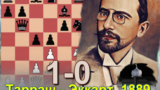 Показательный бой Тарраша: белыми взял на проходе и разбомбил на королевском Эккарта с двухвариантным матом. Шедевр 1889 года, Нюрнберг, 1-0