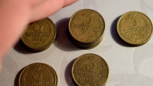 Перебор монет 3 копейки СССР 100 штук- что попалось в куче монет