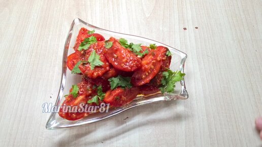 Дома всегда есть помидоры. Закуска пятиминутка, делюсь рецептом как приготовить помидоры в аджике
