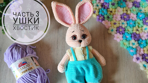 Зайка крючком || Подробный попетельный мастер класс || Часть 3 || Ушки, хвостик, оформление ||