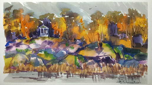 Осень в Монрепо, быстрый этюд акварелью
