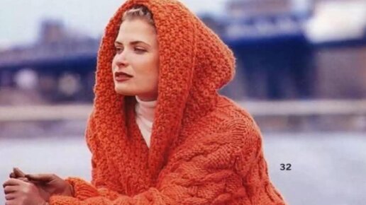 Пальто с капюшоном спицами. Женское пальто с узором из кос.