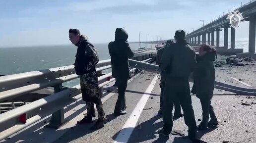 СК показал кадры с взорванного 8 октября Крымского моста во время следственных мероприятий