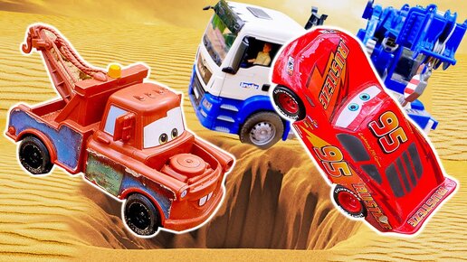 Молния Маквин упал в яму и не может выбраться! Игрушки Тачки в видео про машинки для мальчиков