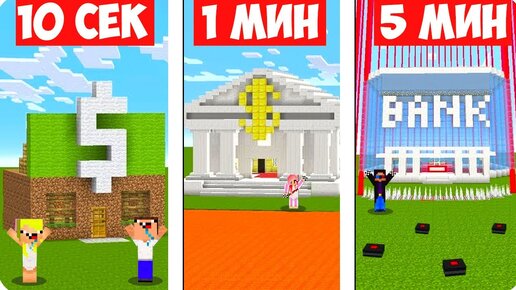 💰НУБ И ПРО СТРОЯТ БАНК ЗА 10 СЕКУНД 1 МИНУТУ 5 МИНУТ В МАЙНКРАФТ! ШЕДИ ЛЕСКА И НУБИК MINECRAFT
