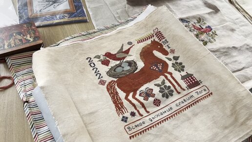 Очень много вышитых работ на встрече вышивальщиц