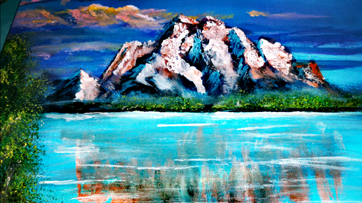 Рисуем красивый горный пейзаж за 10 минут, простая техника.