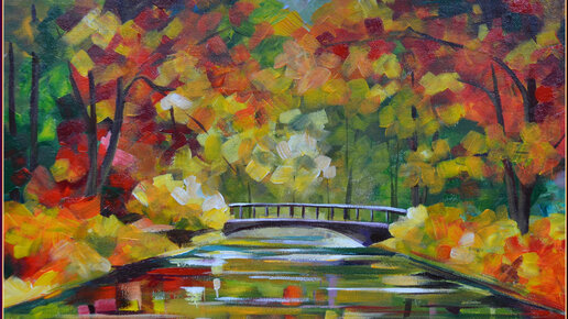 Как нарисовать осенний пейзаж. Осень по мотивам художника Л. Афремова. Акрил