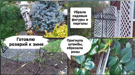 Готовлю розарий к зиме.Убрала садовые фигуры и перголы.