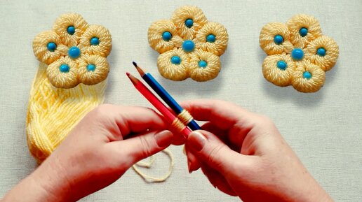 Как на двух карандашах сделать объёмный цветок из ниток. Покажу супер лайфхак!