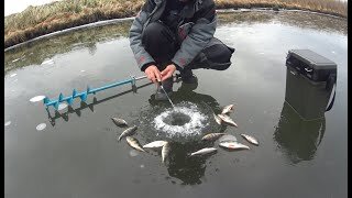 Ловля окуня на безмотылку. Первый лёд всё тоньше