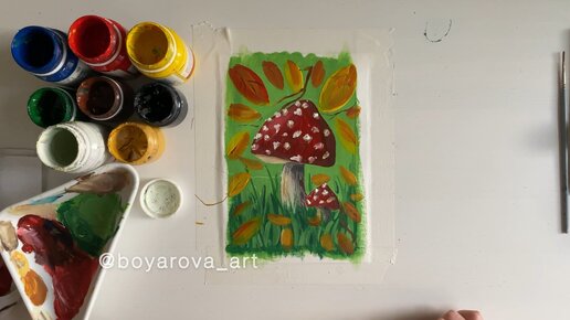 Рисуем мухоморы гуашью.