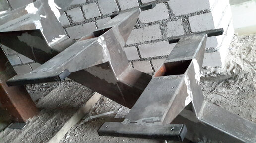 Железный каркас лестницы в дом на монокосоуре из профильной трубы 120х120х4