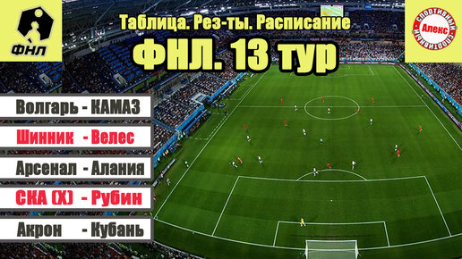 Поднялись, но ...! Футбол России. ФНЛ. Результаты 13 тура. Таблица. Расписание.