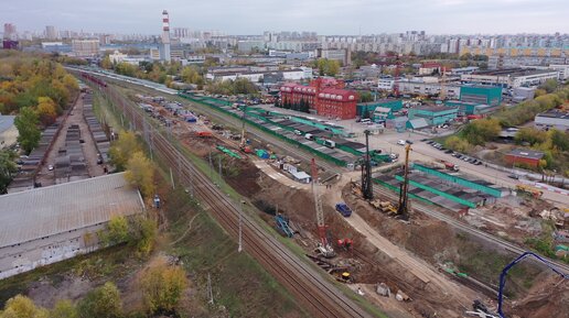 Вид с квадрокоптера на ход работ по строительству дороги между районами Отрадное и Восточное Дегунино