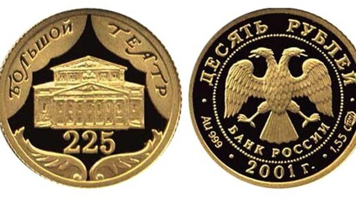 Золотые 10 рублей 2001 года
