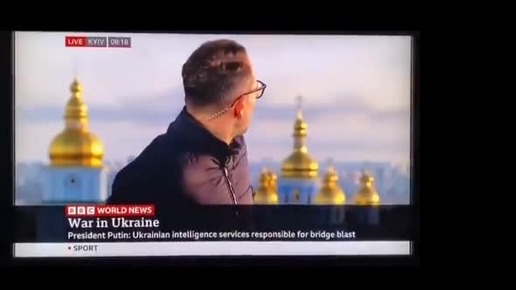 Во время прямого включения из Киева над журналистом BBC world news пролетели ракеты.