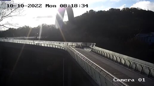 ⚡️ Кадры уничтожения пешеходно-велосипедного моста «имени Кличко» в Киеве сегодня утром.