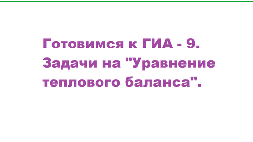Готовимся к ГИА - 9 по физике, начиная с 8 класса. Задачи на "Уравнение теплового баланса".