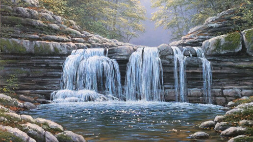 Пишем маслом, картина "Пшадский водопад" художник Алик Олейник.