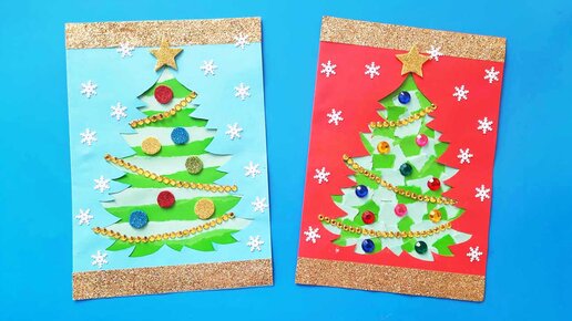 Новогодние открытки с елочками за 5 минут! / Обрывная аппликация