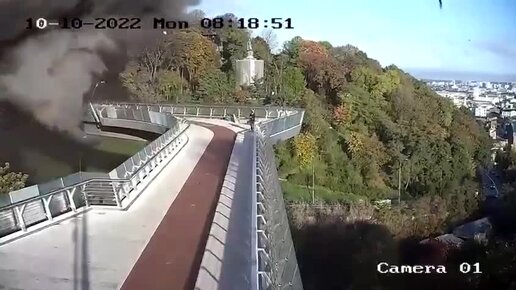 Везучий прохожий и взрыв у моста с другого ракурса.