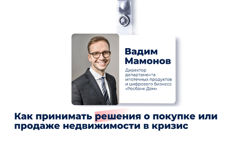 Антикризисные советы дает Вадим Мамонов, директор департамента ипотечных продуктов и цифрового бизнеса «Росбанк Дом». #РосбанкДом