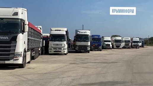 Грузовики на площадке бывшего аэропорта в Керчи жду парома