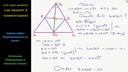 Геометрия В треугольнике ABC проведен серединный перпендикуляр его биссектрисы BD, который пересекает стороны AB и BC в точках K и P