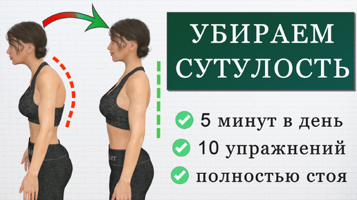 Убираем сутулость + улучшаем осанку: 5 минут гимнастики для ровной спины (любой уровень)