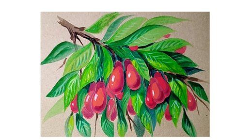 Кизил. Рисунок гуашью на крафтовой бумаге.