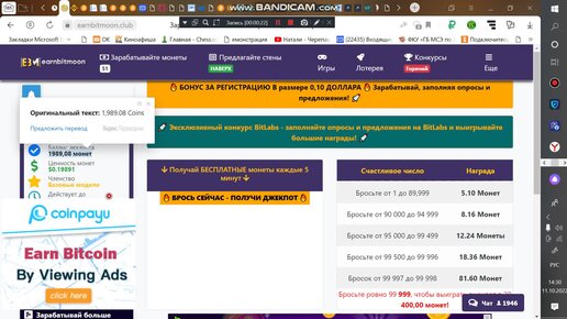 вывод 1104 сатоши с сайта earnbitmoon на кошелёк FausetPay.