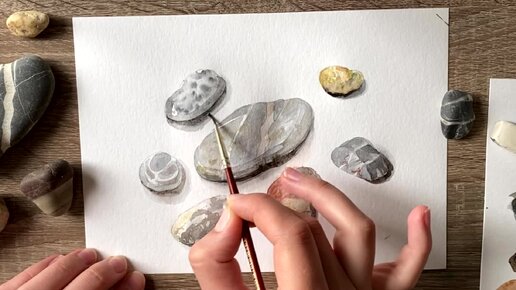 Морские камушки акварелью. Рисовать просто! Поэтапное рисование
