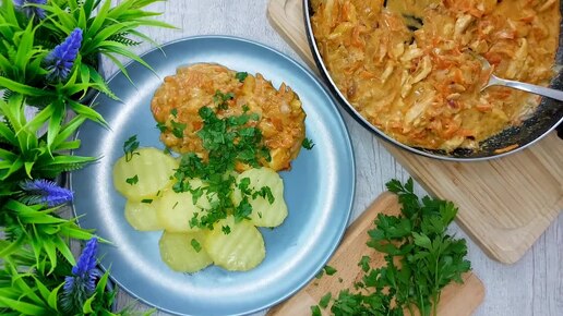 Итальянский быстрый ужин. Вкусное куриное филе в смитанном соусе