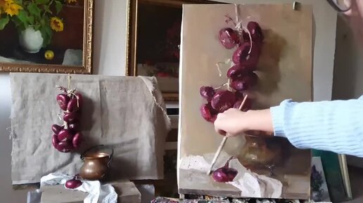 Натюрморт с Ялтинским луком. Живопись маслом.