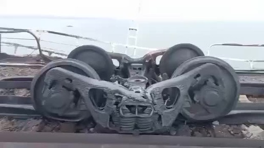 Видео с железнодорожной ветки Крымского моста, где после взрыва загорелись цистерны с топливом