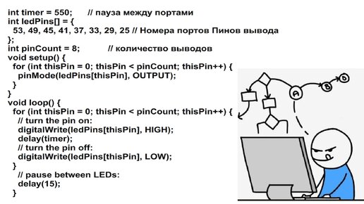 АРДУИНО - Бегущие огни Программируем Микроконтроллеры