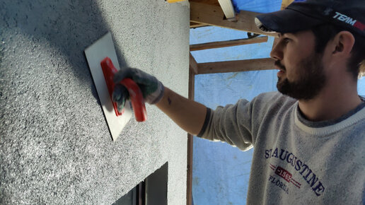 Обучаю рабочих заказчика наносить силикатно-силиконовую декоративную штукатурку Ceresit CT174 1,5мм, фактура камешковая без пятен