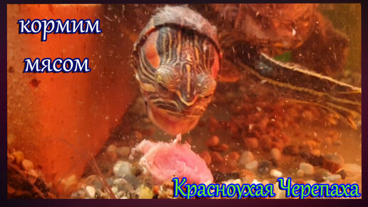 Красноухая Черепаха.Кормим Красноухую Черепаху мясом.