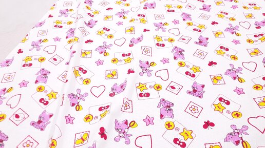 Ткань Фланель с рисунком котят. Детский хлопок российского производства.
