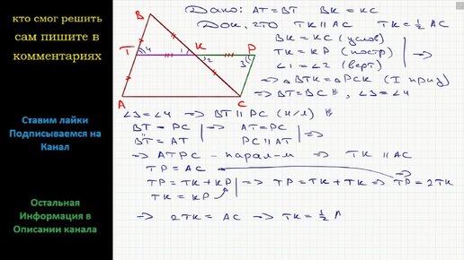 Геометрия Докажите, что Средняя линия треугольника, соединяющая середины двух его сторон, параллельна третьей стороне и равна ее половине