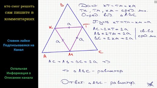 Геометрия Определите вид треугольника, в котором средние линии равны между собой