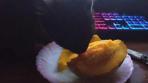Кот-проглот, согласен съесть даже манго!