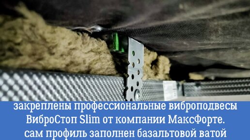 Шумоизоляция потолка. Каркасная схема на профессиональных виброподвесах ВиброСтоп SLIM от компании МаксФорте.