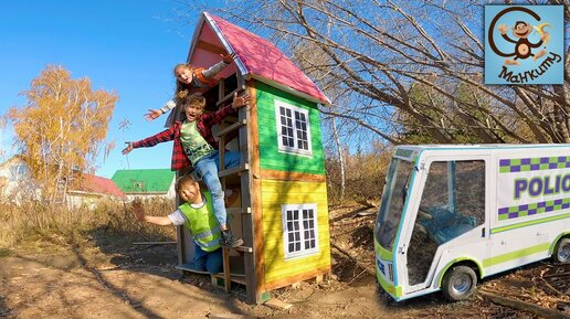 Дети и Машина. Диана, Даня и Милан строят трёхэтажный домик. Манкиту