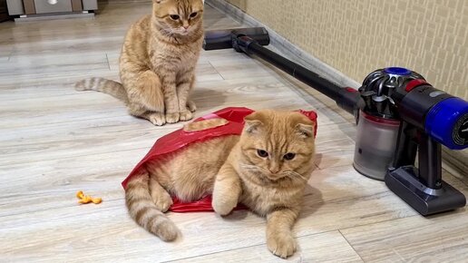 Драка за пакет) кошка Фокси и котенок Персик смешные коты приколы
