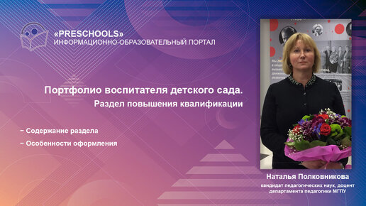 Наталья Полковникова − Портфолио воспитателя. Раздел повышения квалификации