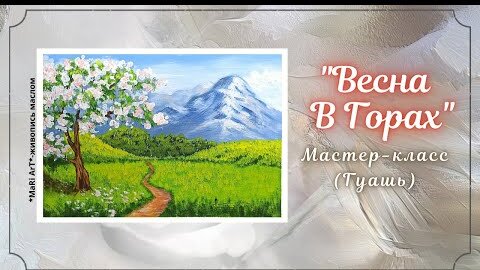 🎨_ВЕСНА В ГОРАХ_-ГУАШЬ_простой пейзаж для начинающих