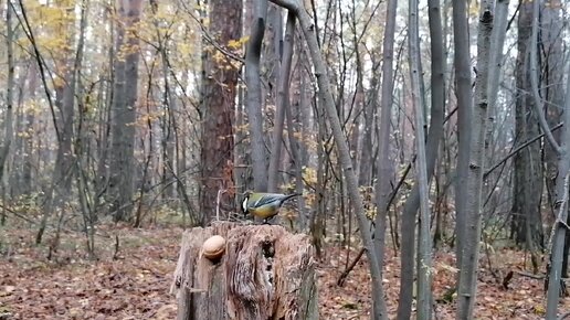 Синичка изучает грецкий орех 🌰